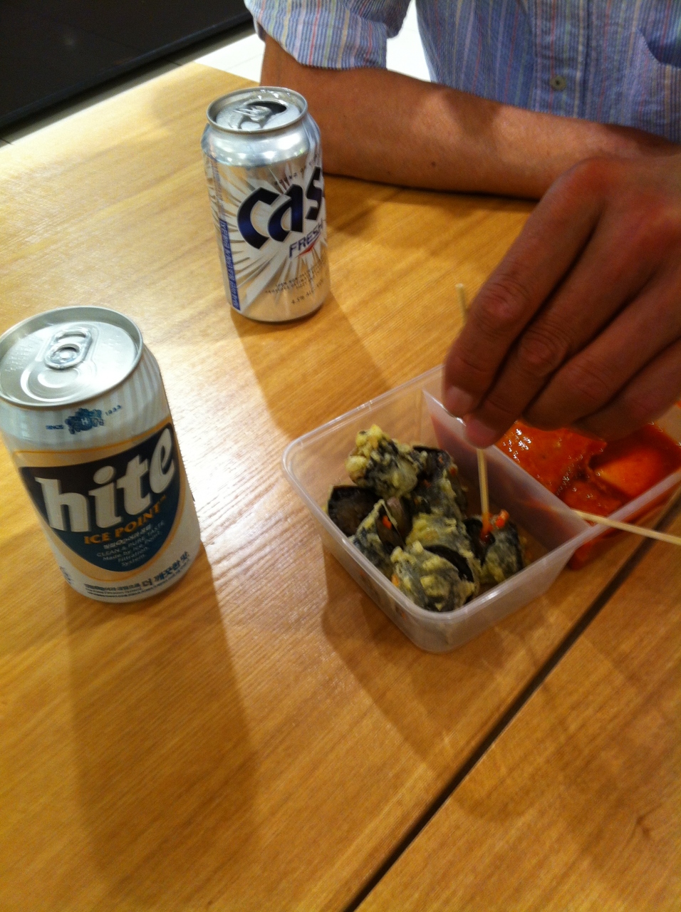 私達も、ビールを買ってお惣菜コーナーでつまみを買ってその場で食べました。