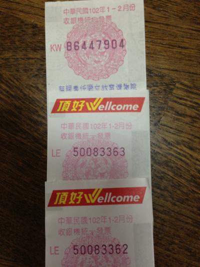 台湾のショッピングでスーパーやお土産物屋さんでレシートをもらったら、捨てずに取っておきましょう~~!