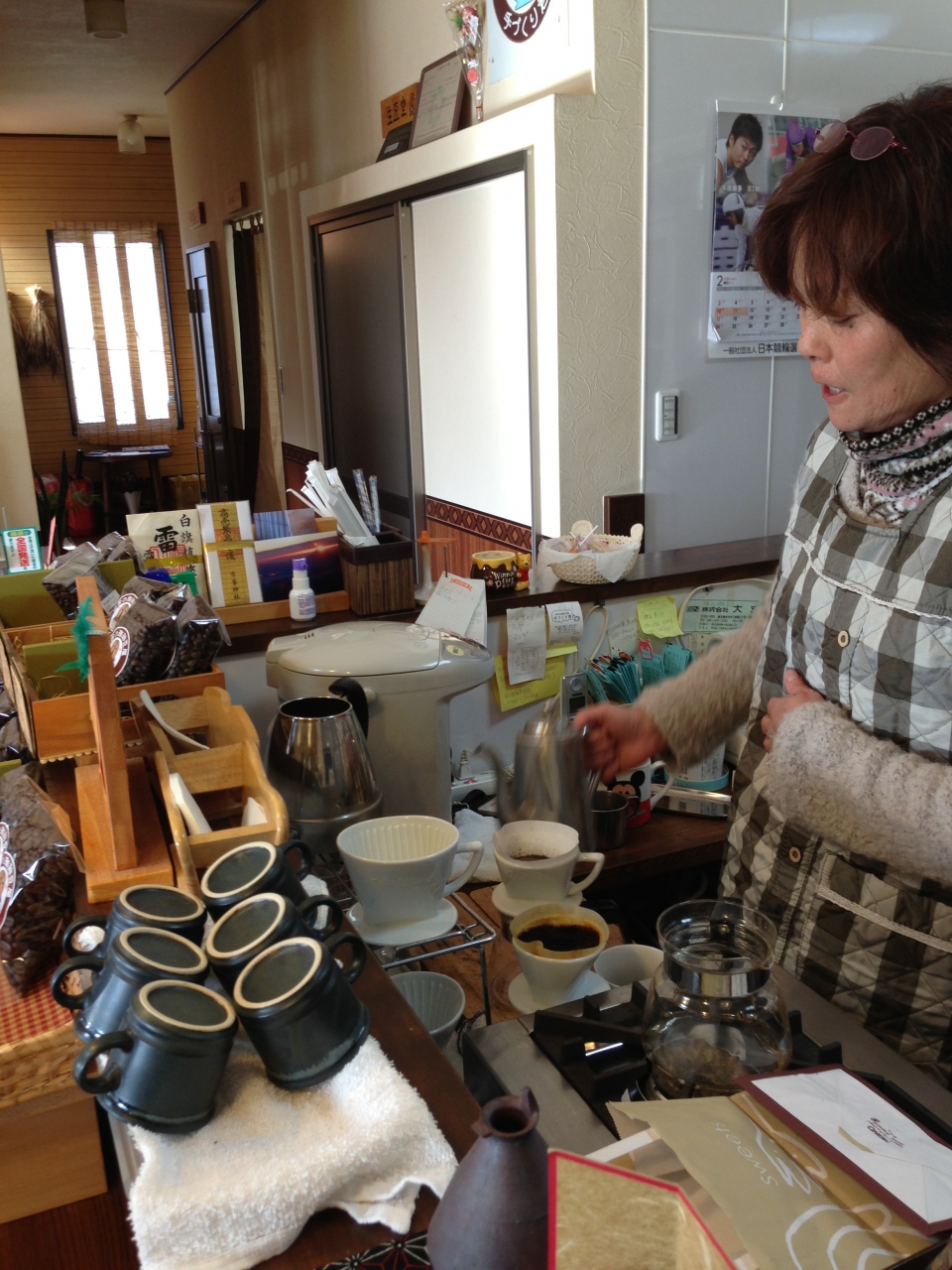 お豆を買いに来たお客さんには、デミタスカップでお好きなコーヒーの試飲も出来ます。