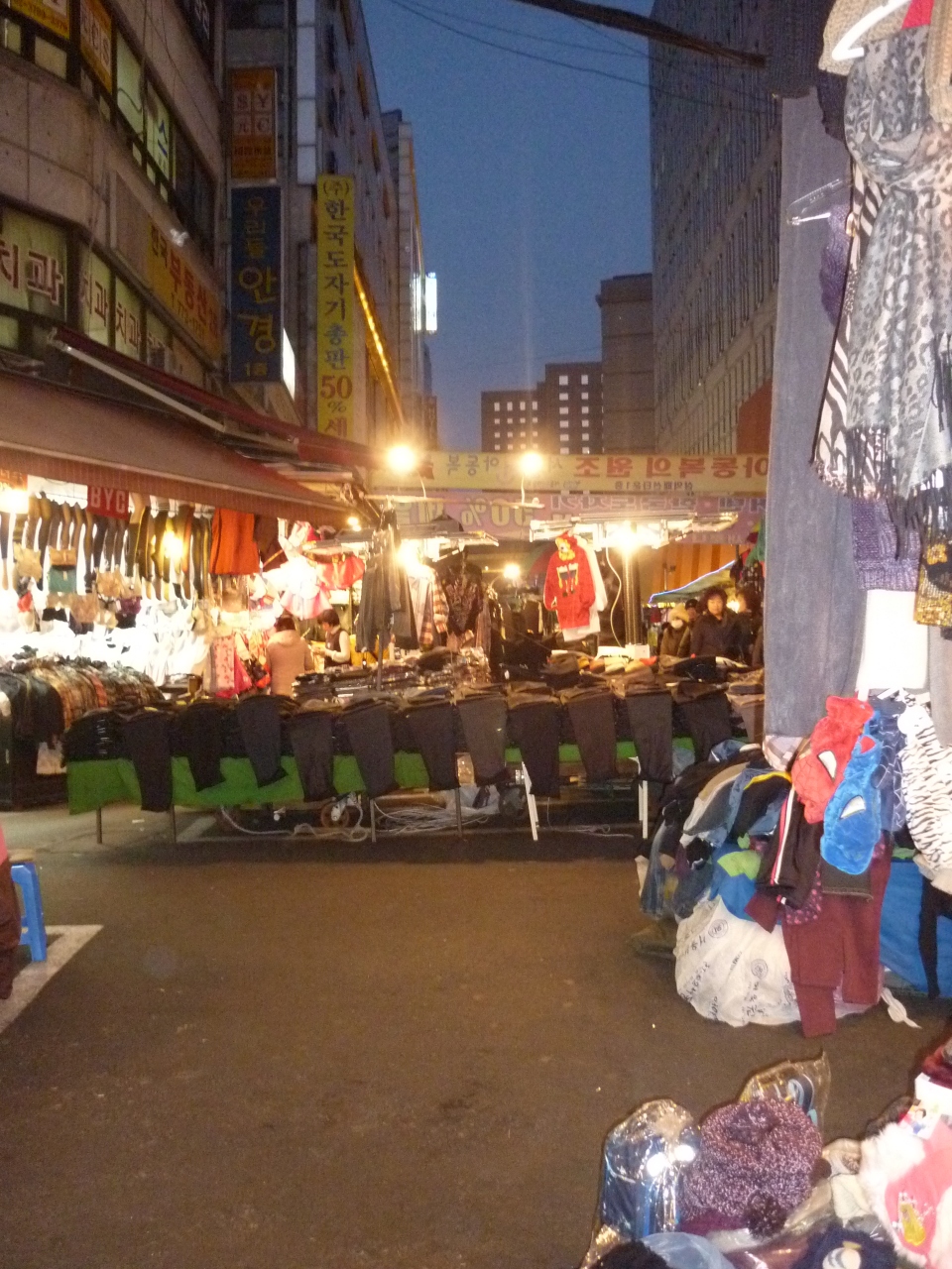 私はいつも、この市場で普段使いの自分用の安いメガネ(レンズ付きで3000円)と、韓国ならではの暖かズボンやスパッツ(1枚300~400円位)などをばらまきお土産用に必ず購入します。