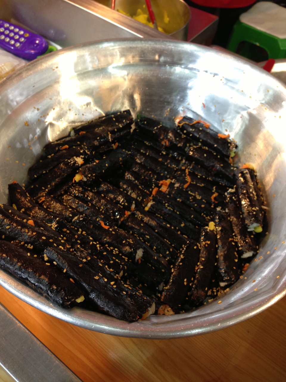 時間が遅かったので、広蔵市場内の商店は閉まってましたが、屋台のお店と麻薬キンパのお店はやっていて買えました。