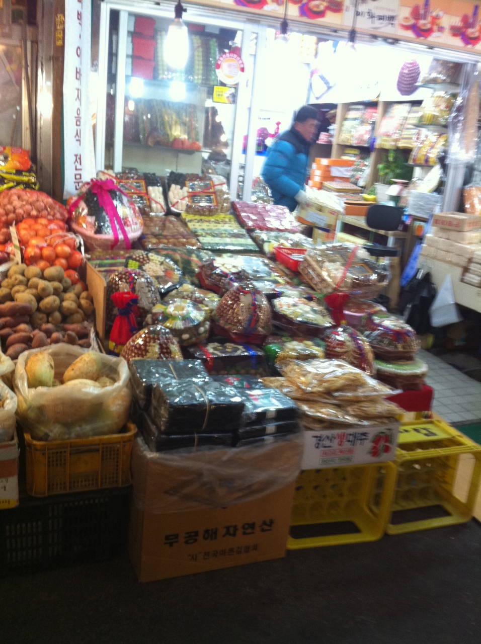 焼き立ての海苔屋さんやら、お惣菜屋さん、韓菓子屋さん、パン屋さん、衣料品屋さん~~などなどローカルな市場がすごく面白かったです。