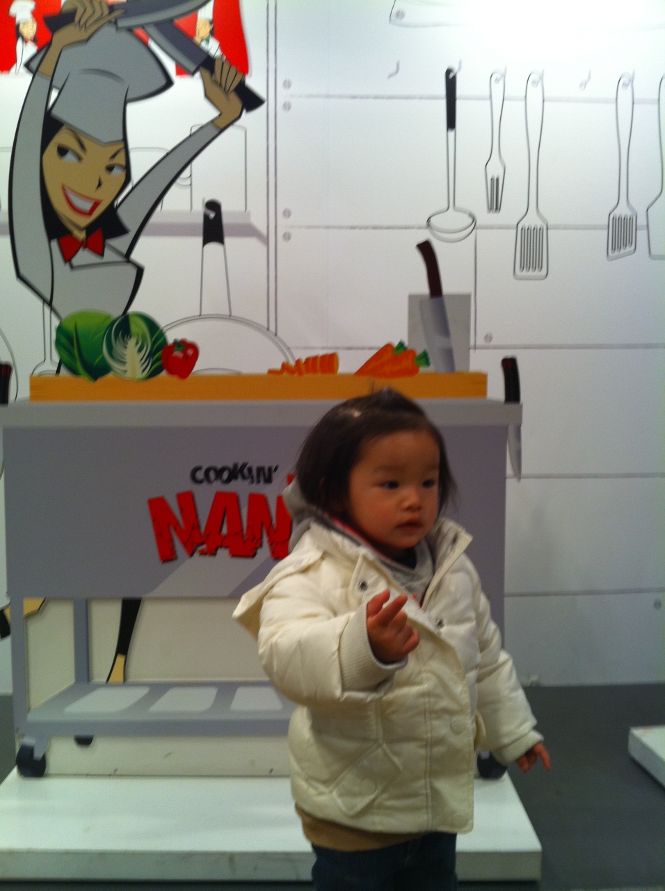 包丁やフライパンを叩く音も、出演者の何語かわからな様な会話も楽しかったみたいです。