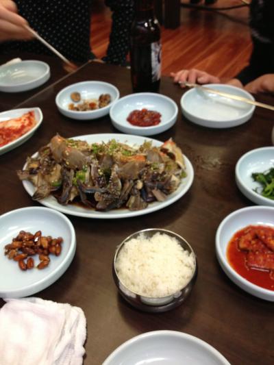 カンジャンケジャンにカニ鍋に焼酎やらビールやらたらふく飲んで食べて1人あたま2500円くらいでした。