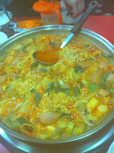 日本人とわかると、その他のメニューもお勧めされますが、そこは地元民になりきってキムチチゲの食べられればラーメンサリ入りを~~