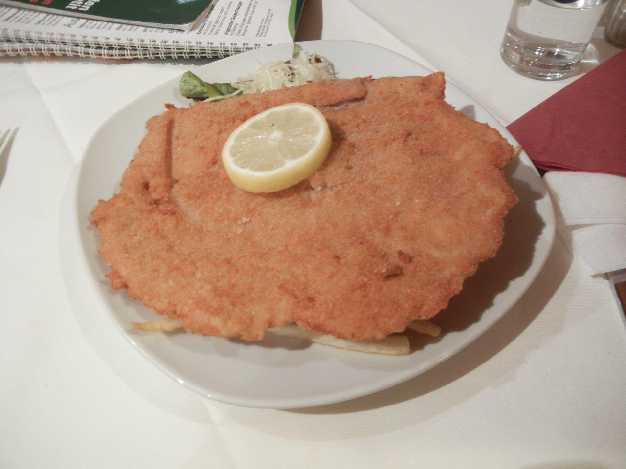残念ながら豚では無く、鶏のシュニッチェルだが味は良い(値段もお手頃)。