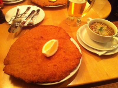 シュニッチェルは巨大で、一人で食べるのは本当にしんどい。