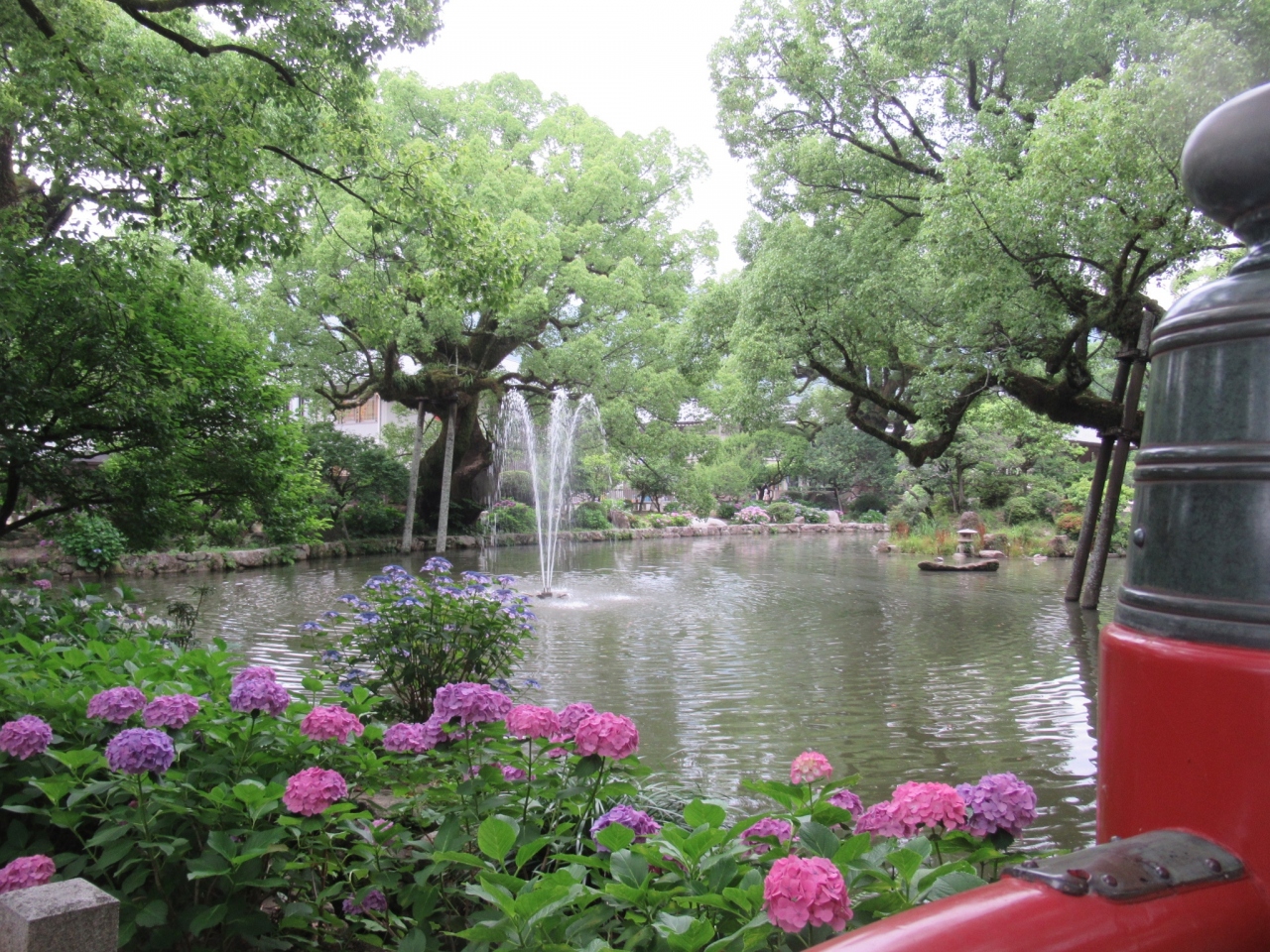 太宰府天満宮には、様々な重要文化財があり、それを見て回ると1時間では見切れません。広い境内の飛梅は必見です。また撫で牛も二匹居ましたので、見てください。紫陽花の時期のおみくじは、紫のおみくじでした。手水鉢は紫陽花で埋められて、とても癒されました。池の噴水も素敵です。樹木は樹齢が何年も経過しているので、一本一本苔むして、歴史の重みを体感しました。梅の季節は魅力が増すのだと思いました。- 旅行時期