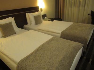 このホテルは、客室数が650室もあるので、常にレストランは混雑している印象でした。客室もヨーロピアンスタイルで 狭くてベッドの幅も短かったです。アメニティーはボトルのボディーソープのみでした。前日に泊まったウィーン・ルネサンスが連泊だったので、持ち帰ったアメニティーが役に立ちました。添乗員さんからのアドバイスが無かったら、シャンプーとリンスを買う羽目になっていたでしょう。ネットもつながるけれど遅いです。また 泊まろうとは思いません。