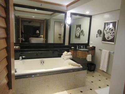 お部屋もクラブラウンジも、スパやプールに至るまで、全てにおいてスタッフのサービスが素晴らしいです。今や、都心のホテルと同等かもしれません。ここで、嫌な気持ちになったことは一度もありませんでした。お部屋は、角部屋でしたので、静かでベッドの寝心地もよく、何と言ってもビューバスが素敵でした。