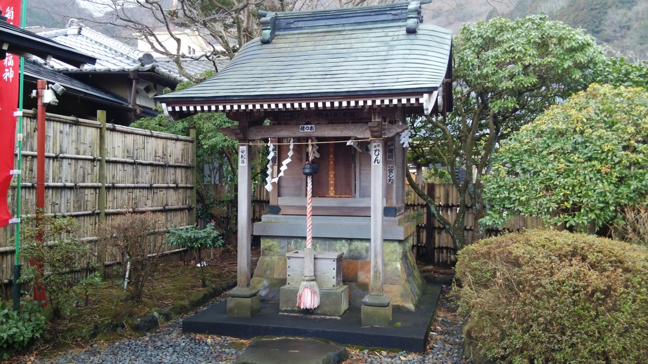 箱根神社九頭龍明神を分祀して祀ってありました。大きなホテルの裏に、立派な滝と神社がありました。ホテルからは滝と神社を借景として楽しめるようです。入り口の社務所では何種類か御朱印をいただくことができました。ホテル利用者以外が駐車すると料金をとられるのでご注意ください。