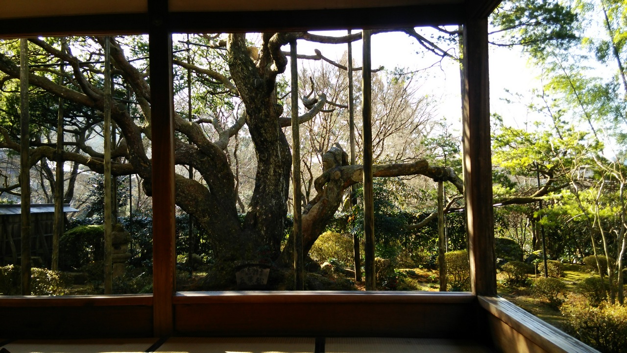 勝林院と宝泉院は拝観料がセットの方がお得でした。宝泉院は庭が有名なので入り口から入ると庭を散策して建物に入りました。抹茶と茶菓子が出るので、毛氈が敷いてあるところで待ちます。柱が少なく、柱が額縁みたいに庭を切り取ってみられとても風流でした。廊下の天井は血天井でした。