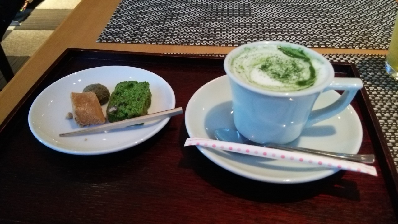 京都でお茶するなら、コーヒーもいいけど、宇治茶専門店を選びました。宇治茶をつかったスイーツや飲み物がたくさんあり、さすがお茶処だと感心しました。宇治茶のカプチーノを注文しましたが、香りが高く、抹茶特有の苦味もあり、たんのうしました。お茶菓子がついているのがいいですね