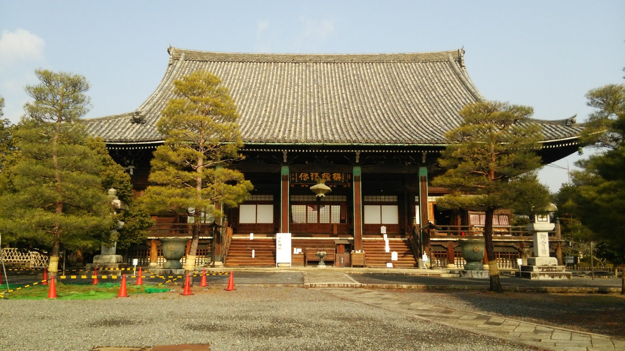 総門にはたくさんの外国人がいました。細長い紅葉の馬場を歩き、勅使門をくぐると本堂がありました。音声で寺の由来について紹介していました。ご本尊は阿弥陀如来と釈迦如来の二体あり、ともにいい表情をされていました。