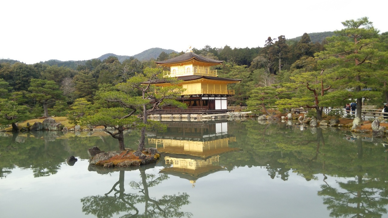 外国人の多さにびっくりしましたが、祭りの縁日みたいに出店もたくさん出ていました。金閣寺ではほぼ全員が写真を撮るので、写真撮影が規制されていました。天気がよくて、池に映った逆さ金閣寺もみられ、大変満足しました。出口辺りで御朱印を頂けました。