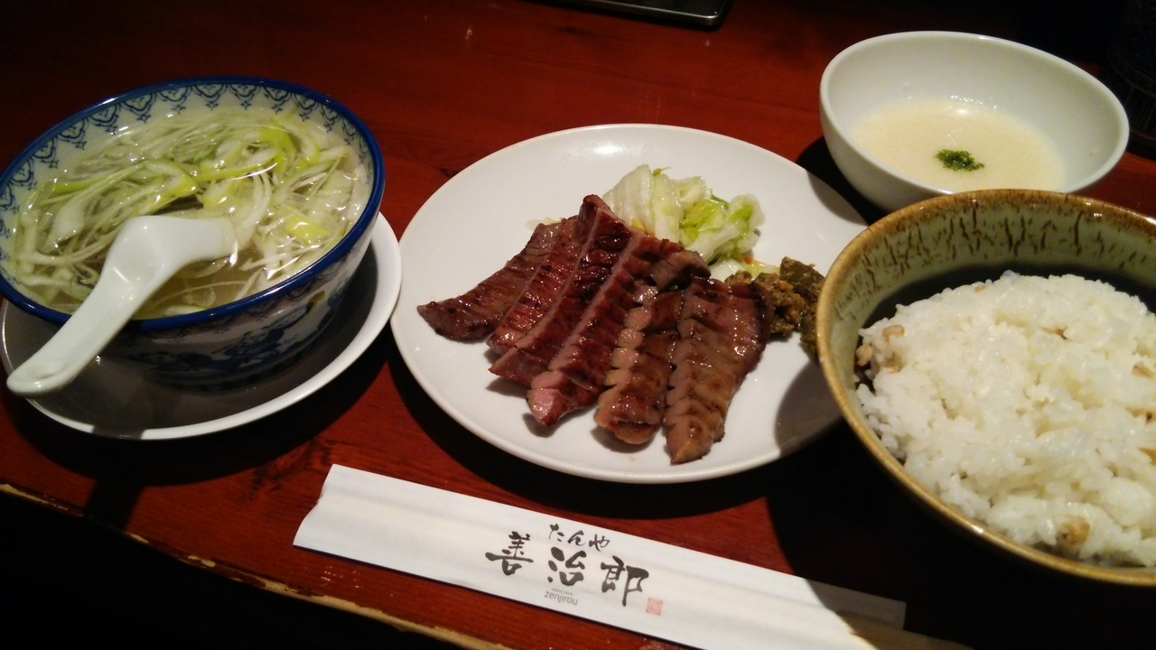 仙台駅の牛タンの店が集まった、その名も牛たん通りにある一軒です。名物は食べたいがあまりお腹は減ってません。メニューを見比べともあまり違わないのですが、この店は量が少な目で値段も比較的安いメニューがあり、この店に決めました。牛たんはジューシーで、スープはあっさりして量もちょうどよかったです。