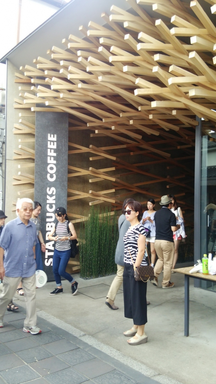 全国にスターバックスはありますが、太宰府天満宮の参道にあるこの店は、木の角材を組み合わせたような特徴的な外観が印象的です。福岡県を代表する観光地の太宰府の店舗ということで、地域に溶け込むようなデザインを採用したそうです。