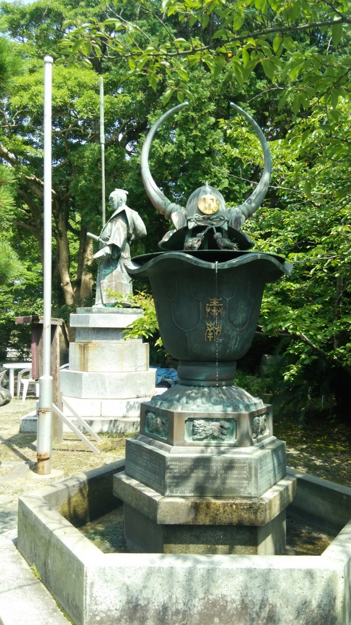 大河ドラマ「軍師官兵衛」の黒田如水・長政の親子をまつっています。地下鉄大濠公園から西公園に向かって坂道を上っていった突き当たりにあります。黒田節のモデルで知られる黒田藩家臣の母里太兵衛の像もあります。関ヶ原の戦いで、馬に乗っていた長政が川を渡っているときに兜が柳の木にひっかかり難を逃れたエピソードを伝える水牛の兜の像もありました。御朱印もいただけました。