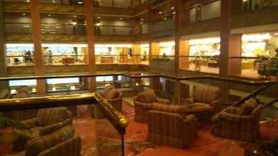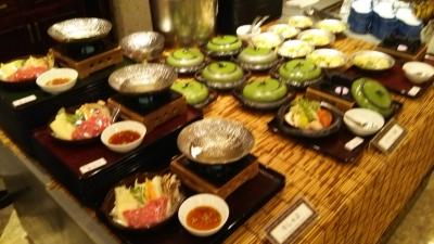 中央部分が吹き抜けの巨大なホテルです。レストラン、売店、カラオケなどこのホテルですべて足りてしまいます。お風呂は3か所ありましたが、最上階の露天が最高でした。食事はビュッフェ形式ですが、夕飯は、ステーキやパスタの実演があり、全部で100種類もの料理が提供されました。朝食は、オムレツが実演で、品ぞろえは十分すぎました。少しずつ食べようとしましたが食べきれませんでした。家族連れが多かったです。