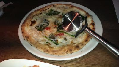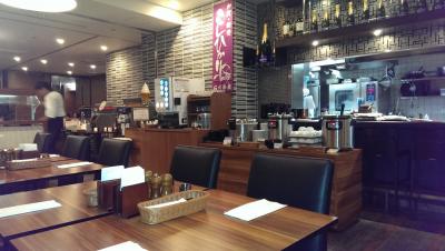 博多駅筑紫口そばのグリーンホテル一階にあります。オープンキッチンが特徴で、ピザにトッピングしたり、パスタを盛り付けたりしています。ランチはパスタかピザを選び、サラダは食べ放題です。ほうれん草としらすのピザを頼みましたが、生地がおいしかったです。