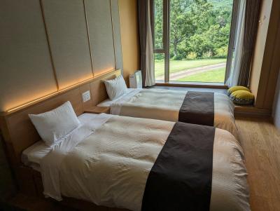 河童橋の目の前のホテルなので、上高地バスセンターからも徒歩5分の好立地にあります。部屋は和室で風呂なしでしたが、大浴場を利用しました。夕食はフレンチ、朝食はビュッフェ。料理は良かったですが、夕食の料理提供が時間がかかりイマイチでした。ただ、ガイド付きのトレッキングは充実していて、参加してよかったです。