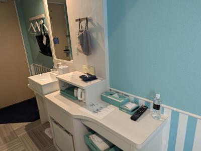 栄駅から徒歩数分。となりにはファミリーマートがあります。錦の飲食店が集積する歓楽街近くなので、食べる店は徒歩圏内でたくさんありました。部屋は電気ポット、加湿器付き空気清浄機、金庫があり、インバウンドが多かったです。ユニットバズはかなり古いようでした。