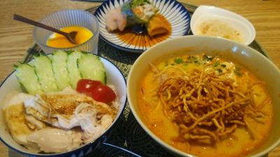 アジアのリゾートをイメージしただけあって、ベトナム、タイ、シンガポールのご飯や麺が揃っていました。ランチで利用しましたが、シンガポールのチキンライスとタイのカオソイのセットメニューにしました。本場の味ではありませんが、日本人向けにアレンジされていました。