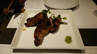 福岡は魚が有名ですが、お肉の美味しい店もあります。いろんな種類の熟成肉が楽しめるコースを選びました。骨付き肉やサーロイン、長崎名物のはとしもあり、おいしかったです。かなり食べごたえがありました。奥に個室もありました。