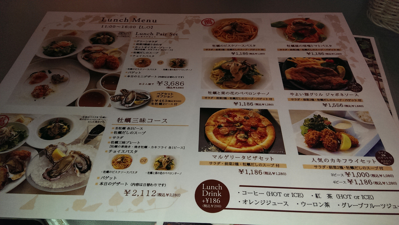 全国の新鮮な牡蠣が手軽に楽しめます。ランチで利用しましたが、生牡蠣、焼き牡蠣、牡蠣フライ、牡蠣のスープ、柿のパスタが楽しめる牡蠣三昧コースがお得でした。店は白が基調で、カウンターとテーブル席があります。