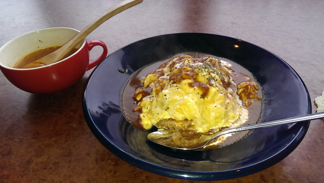 天神の西通りを西に曲がったビルの三階にあります。おしゃれな感じのダイニングバーです。昼も営業していて、ランチを食べることができます。ふわふわの卵が載ったオムライスを頼みました。コクがあるデミソースと、卵、ライスがマッチしていました。