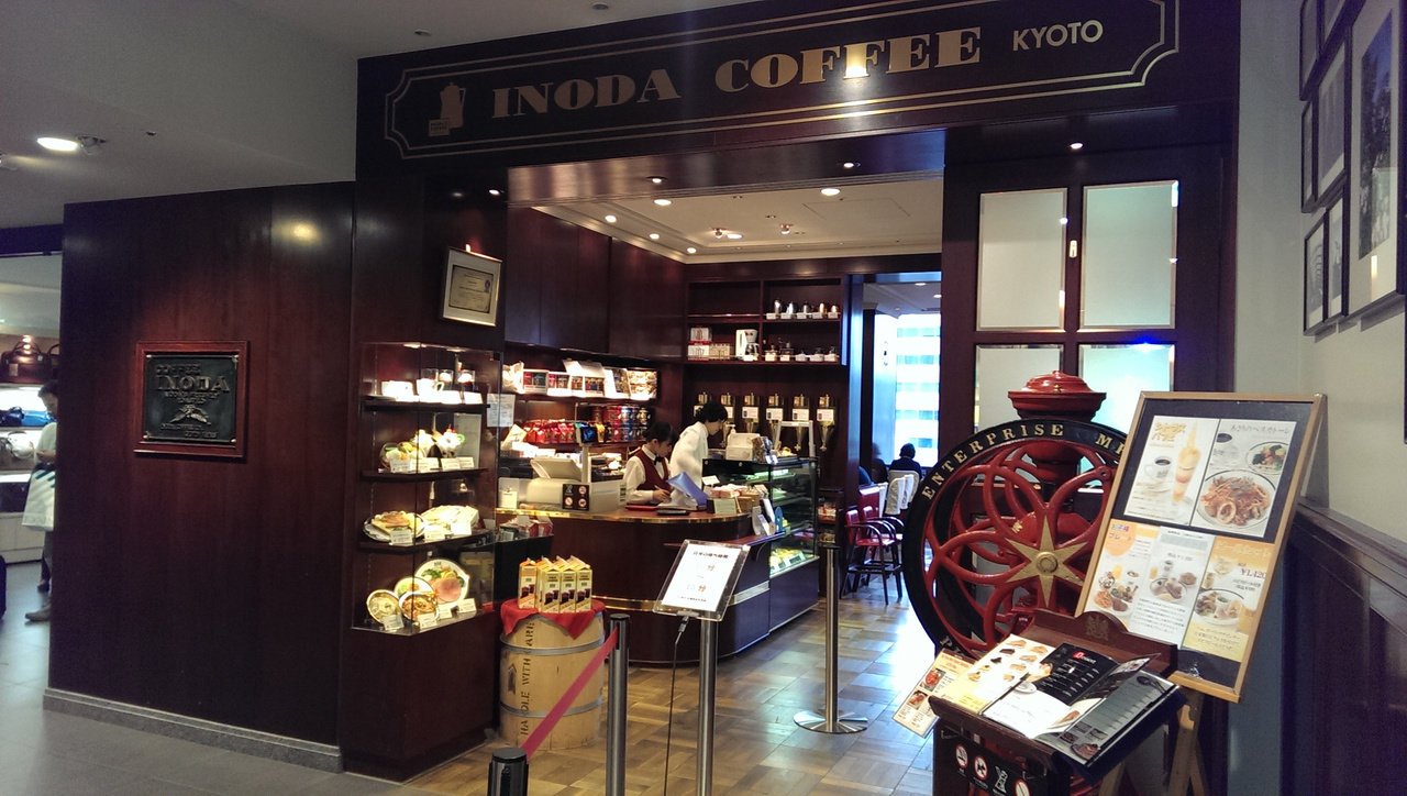 京都で有名な喫茶店のイノダコーヒが、東京駅の大丸に入ってました。大丸には各フロアにカフェが入っていますが、8階の紳士服のフロアにあります。こだわりの珈琲だけでなく、軽食やスイーツも充実しているので、お勧めです