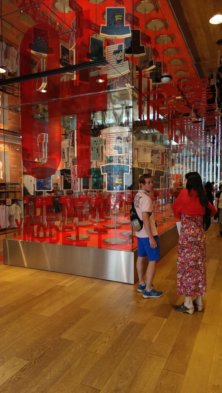 ユニクロを代表する店。一階のTシャツのディスプレイが今後の展開を予感させます。場所柄外国人観光客が多く、免税カウンターが六階あたりにありました。広いのでお目当ての商品や割引された商品も充実しています。