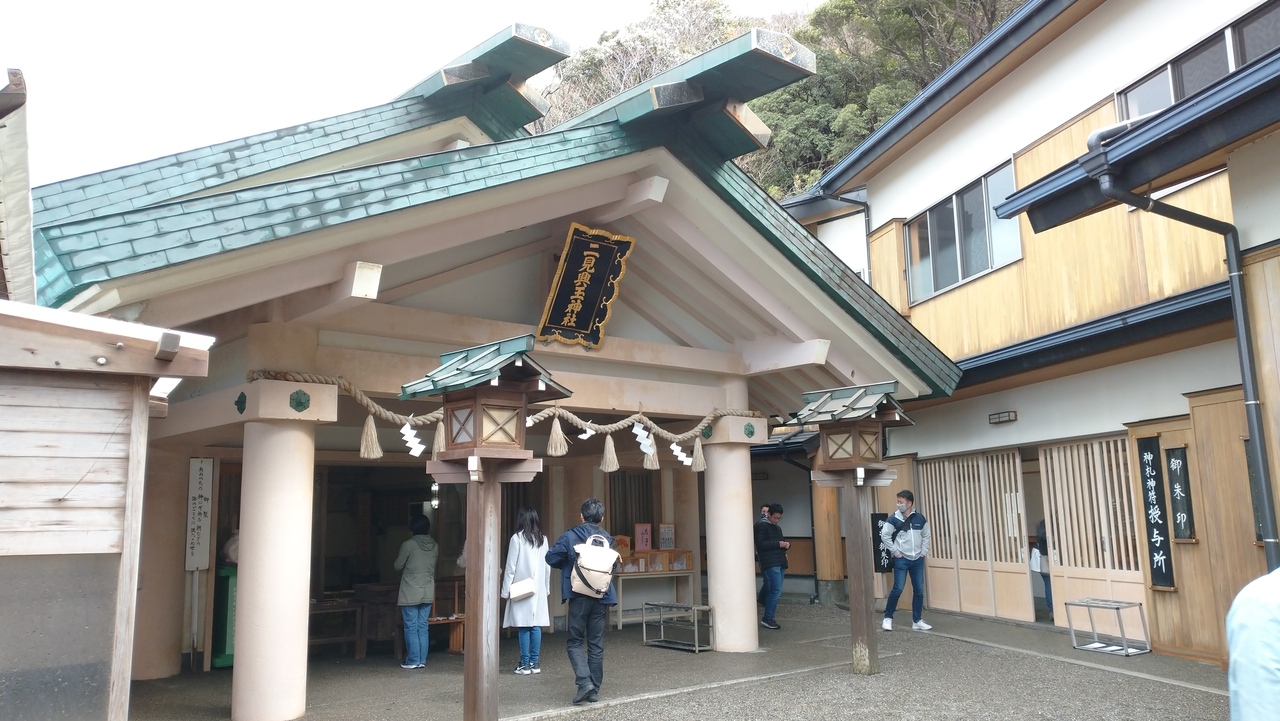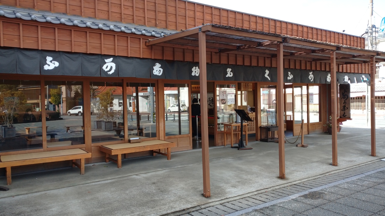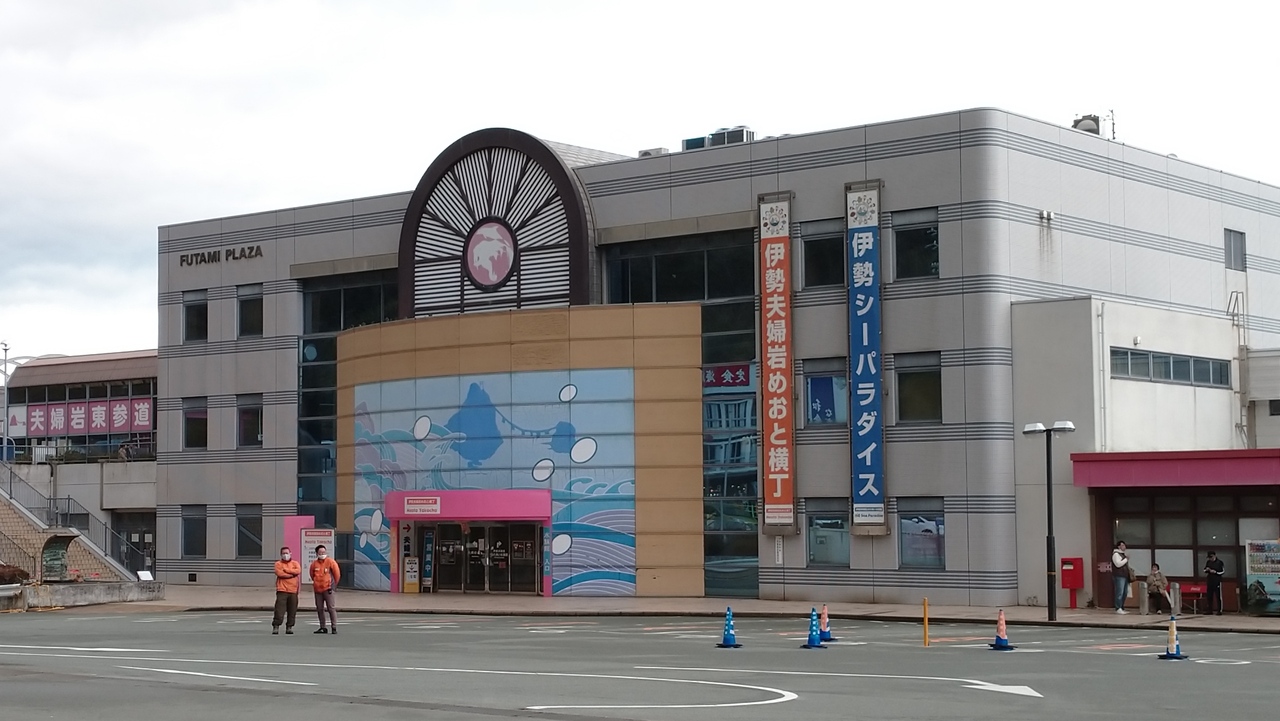 二見興玉神社近くのショッピングセンターです。お土産物屋と飲食店がありました。新型コロナの影響で休業している店もチラホラありました。赤福のイートインを利用したり、水産物の練り物の揚げたてを食べたりすることが出来ました。