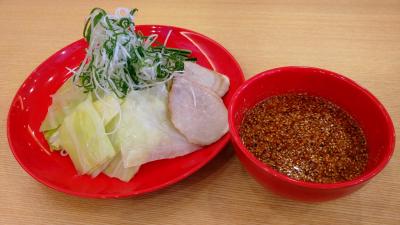 広島の地元グルメの広島つけ麺を初めて食べました。麺には茹でたチャーシューと野菜が載っていて、酸味がきいたピリ辛のタレにつけていただきました。辛さは選べ、初めてなので普通にしました。タレの辛さが癖になります。