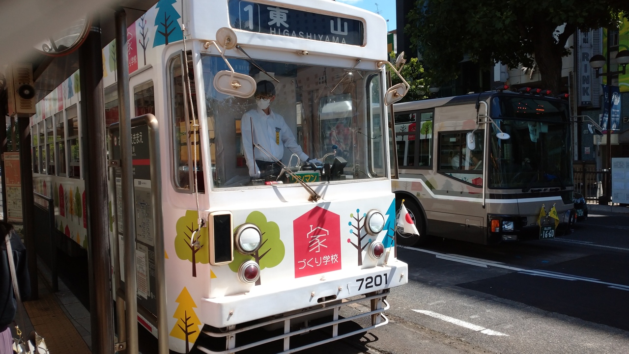 岡山駅から地下の通路を通って乗り場に付きました。2両編成の電車はこぶりでした。岡山城までの往復乗車券を利用しました。岡山城までは数駅ですが、観光気分が高まります。岡山駅まであと少し延伸すればもっと便利になるのにと思いました。