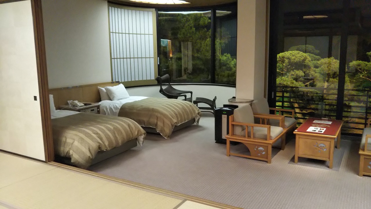 2年ぶりに宿泊しました。和室があり、ツインのベッドにソファもあり、大変上質な温泉旅館でした。温泉も複数あり、砂蒸し風呂もありました。手荒れがひどかったですが、泉質のお陰でよくなりました。朝食は野菜が美味しく、さつま揚げやあげまきがよかったです。