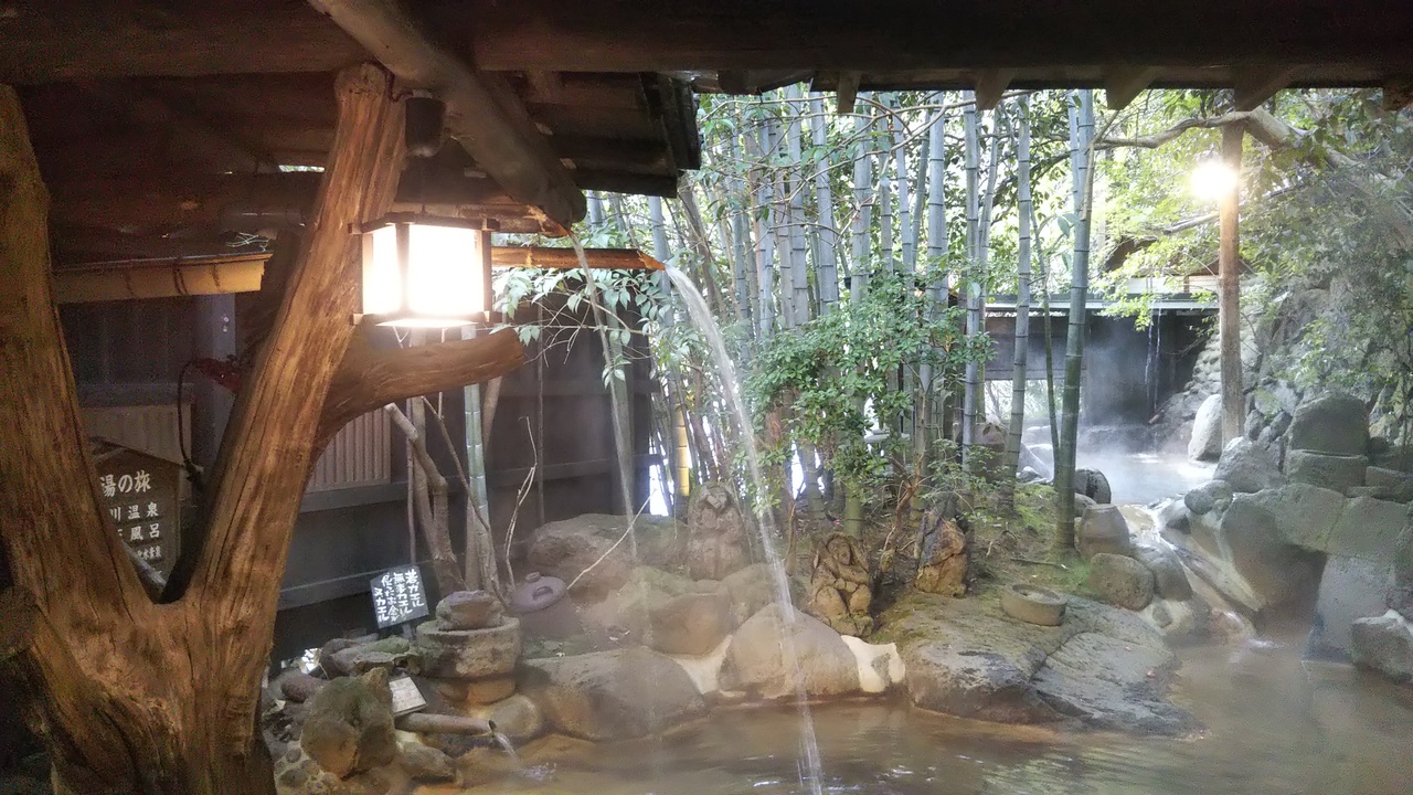 湯めぐり手形で初めて行きました。橋を渡って旅館に入り、受付を済ませました。お風呂は川沿いの細い通路の一番奥にありました。途中で100円をいれるロッカーがありました。岩盤の下に湯船があり、開放的な露天でした。温度もちょうどよく無色無臭の泉質でした。