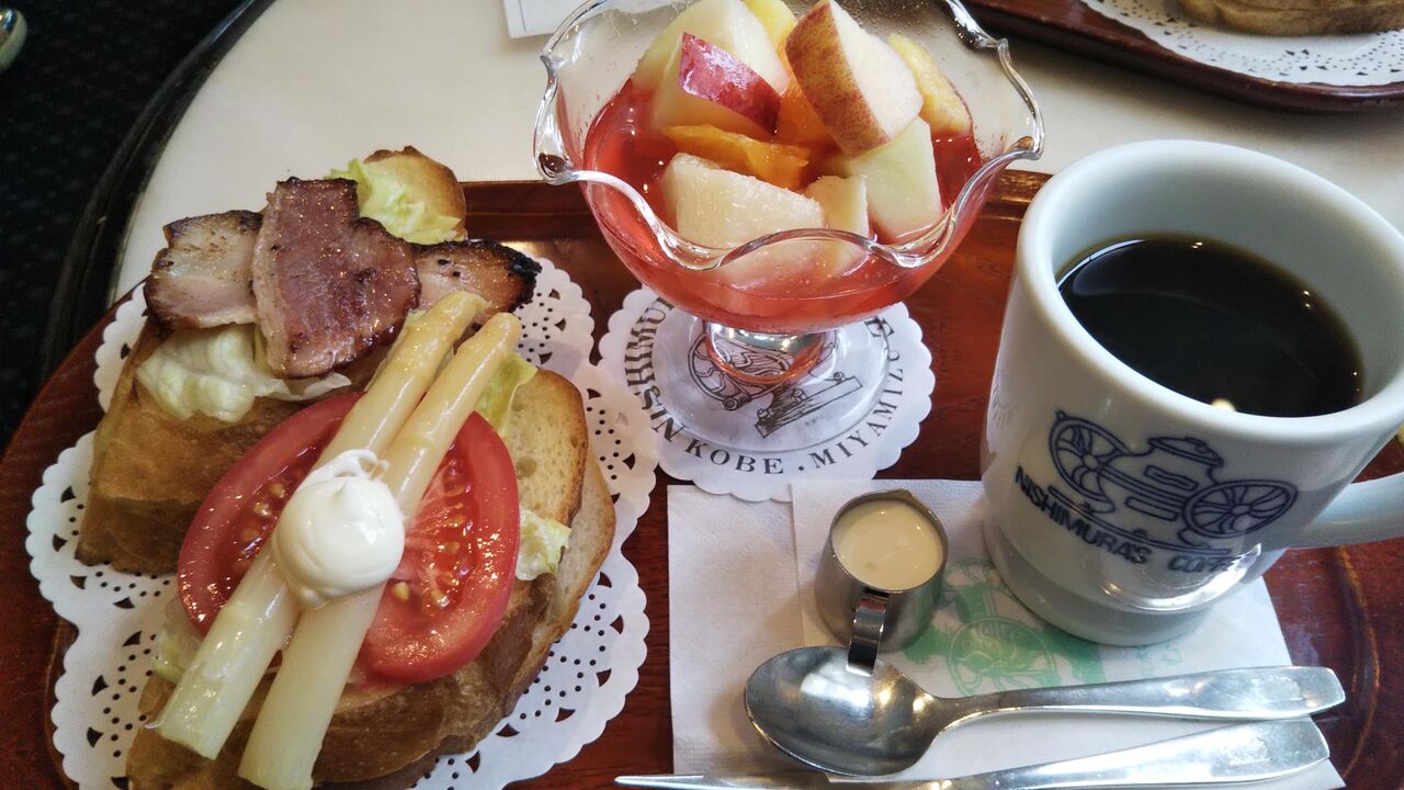 久しぶりに神戸に行ったので、立ち寄りました。お目当てはモーニングメニュー。ホワイトアスパラにベーコンが載ったパン、フルーツカクテル、ブレンドコーヒーがついています。パンは地元のイスズベーカリー。安定した美味しさです。