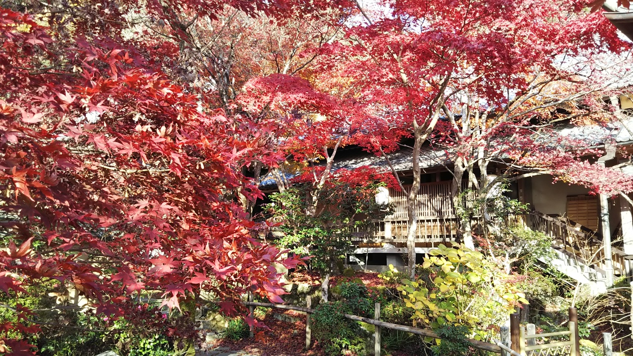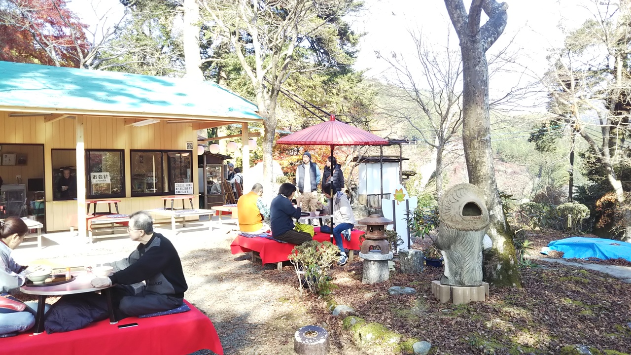神護寺のお参りが終わり、参道を下っているとありました。天気がよく、屋外に席があり、毛氈を敷いた茶店のような感じでした。紅葉を眺めながら食事ができました。京都らしく、ニシンそばを頼みました。雰囲気も手伝ってなかなかよかったです。