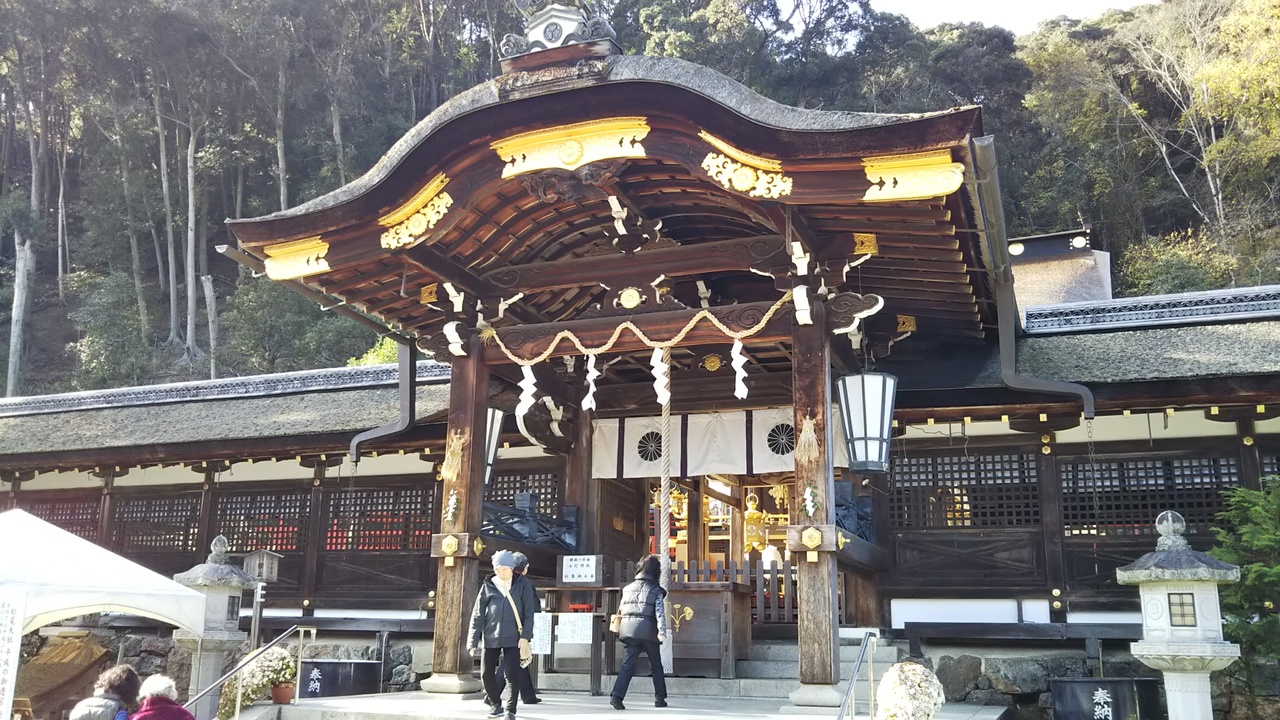 阪急電車で松尾大社駅から歩いて行きました。日曜日の午前中でしたが、そこそこ参拝客が来ていました。御朱印は数人並んでいました。境内の拝殿そばにある大きな絵馬は既にイノシシになっていました。大勢の初詣客を迎える準備が進んでいました。