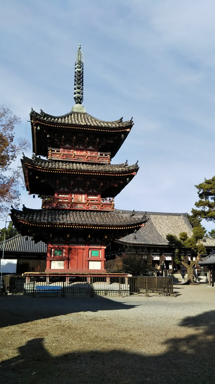 聖徳太子ゆかりの寺なので、規模は違いますが、法隆寺に似た雰囲気がありました。本堂と五重塔は歴史を感じさせました。敷地内で再建工事が行われていて、仮設の事務所がありました。寺務所は九時半からなので、早く行くと御朱印をいただくのに待つことになります。