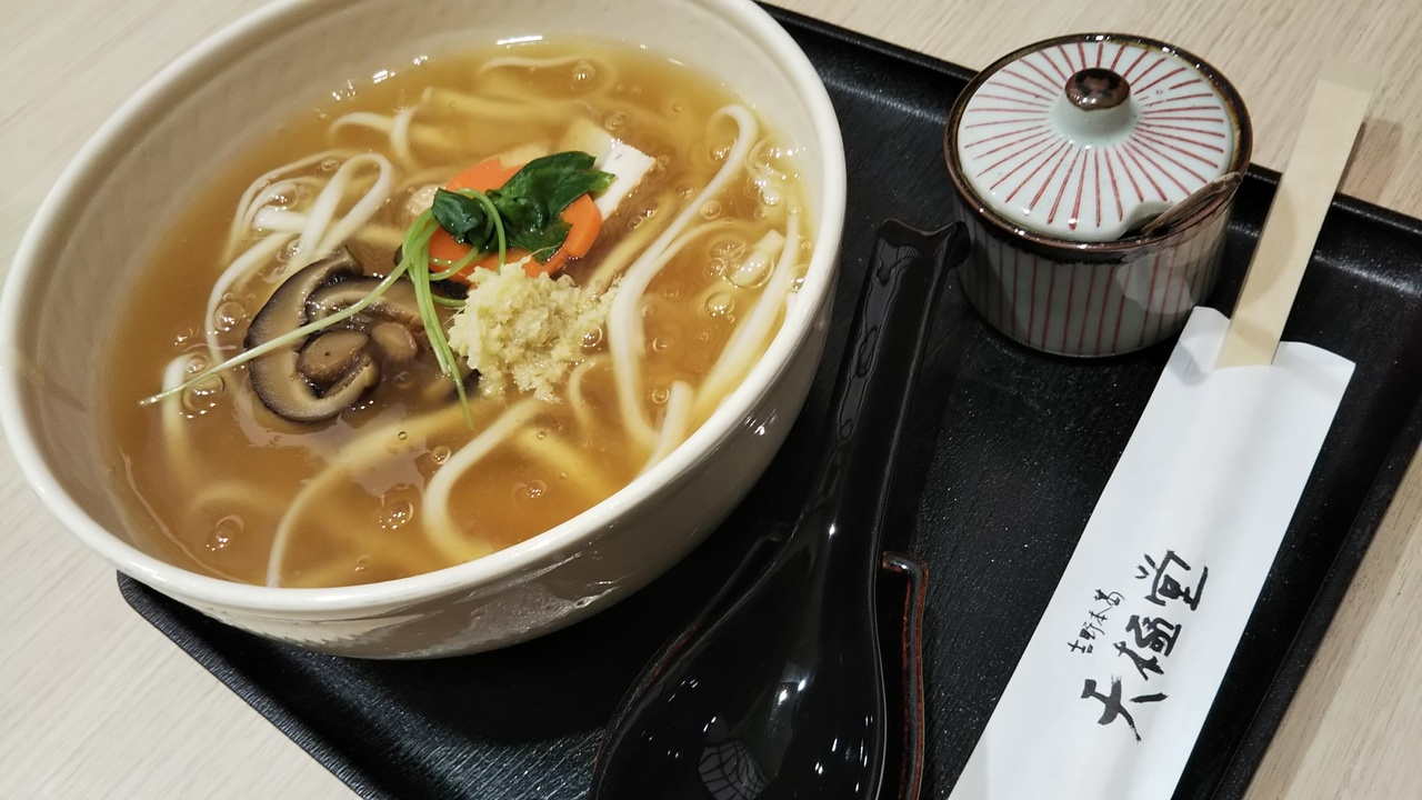 JR奈良駅にはレストランが少ないですが、駅ビルの中で見つけました。吉野の葛を使ったうどんや丼、甘味がありました。葛餡のうどんにしました。葛餡は薬味のしょうがとの相性がよく、麺とよくからんで優しい味でした。