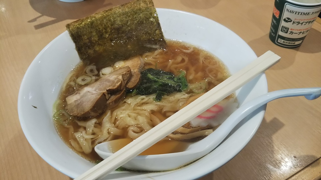 お昼時だったので、大変混雑していました。修学旅行と思われる団体客もいて、売店やレストランもすごい人手でした。名物の佐野ラーメンにしましたが、塩、しょうゆ、みそてわ迷いましたが、シンプルなしょうゆにしました。麺が平たくてツルツルしていて美味しかったです。