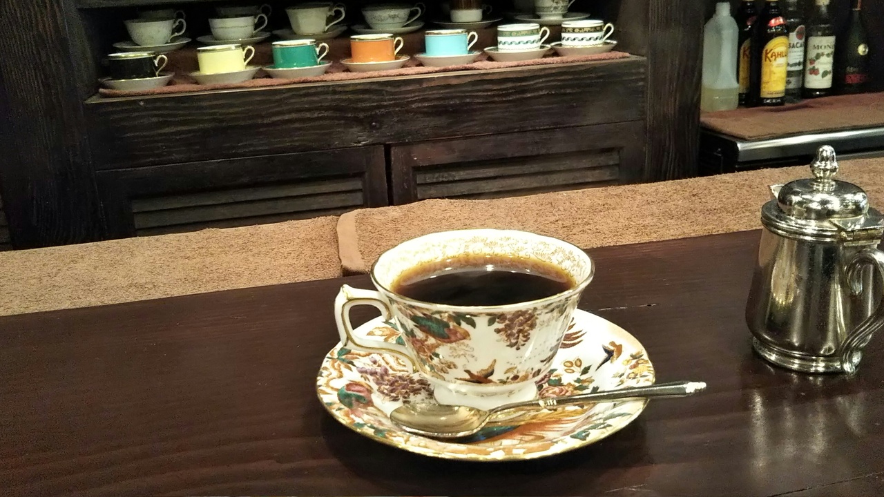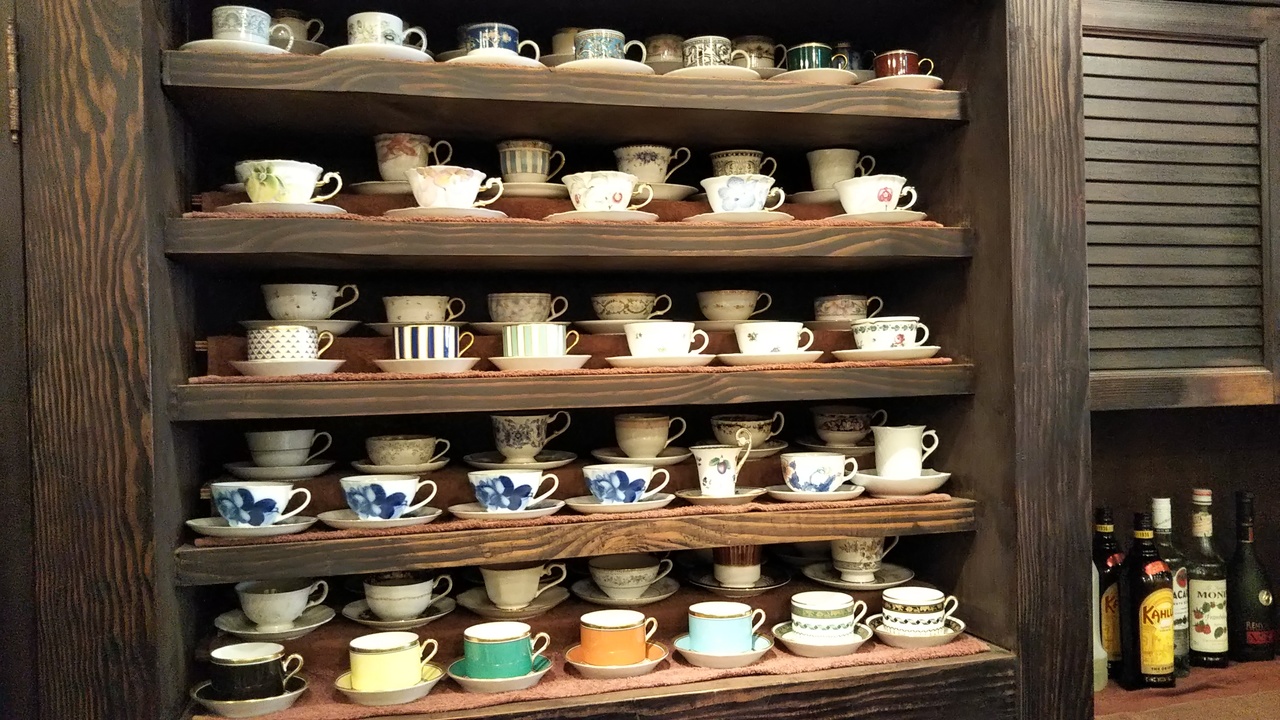 牡蠣料理を食べた後、同じビルだったので行きました。高級感あふれる喫茶店でした。ブレンドは1100円でした。たくさんの高級なカップ&ソーサーが並んでいました。珈琲は芳醇で、酸味が少なく、スッキリとした味わいでした。