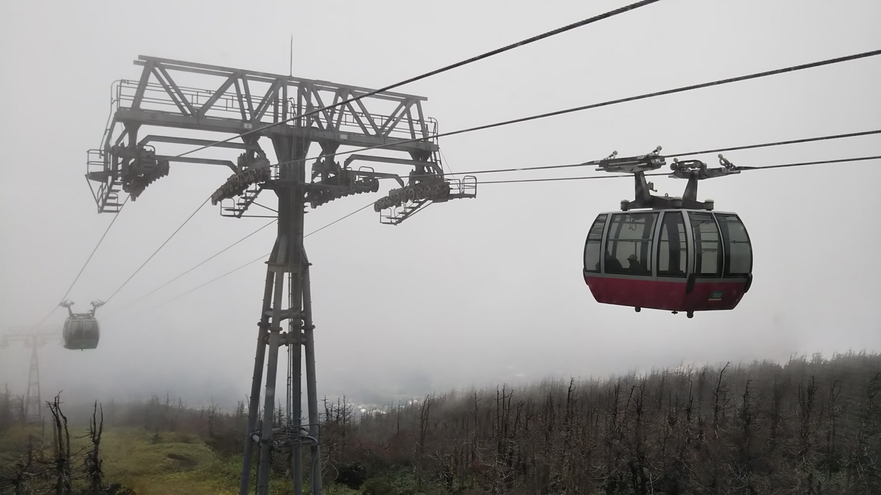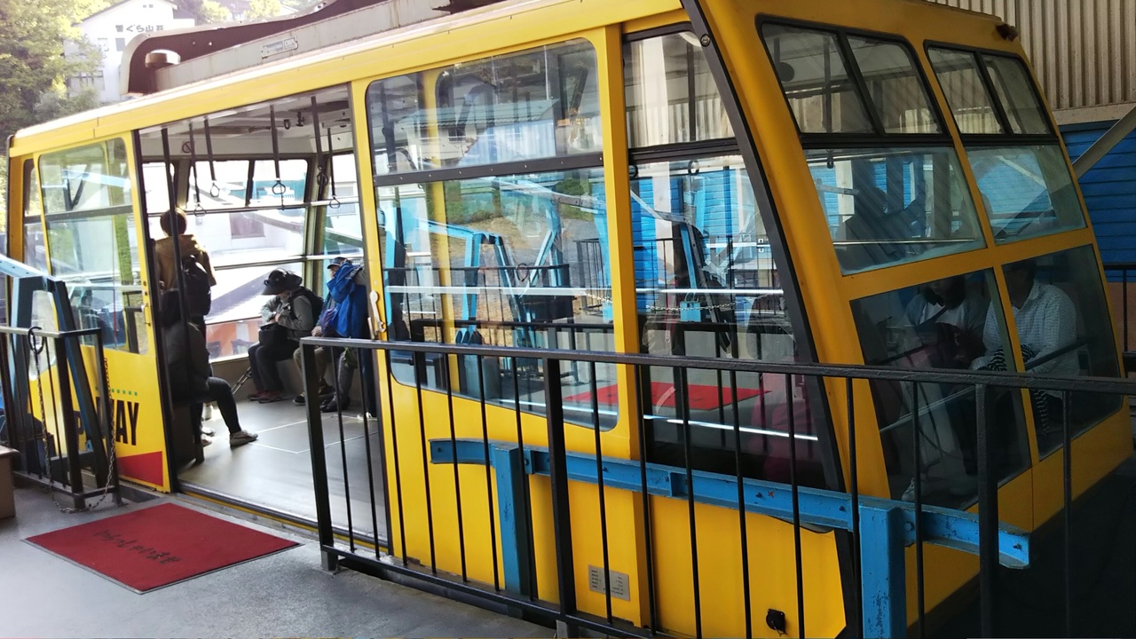 蔵王温泉から大黒天まで、一度にたくさんの観光客を運んでくれます。20分間隔で運行していました。途中、冬にはスキー場になるゲレンデの上を移動します。カモシカや露天風呂も見えました。頂上駅の喫茶でコーヒーが百円引きでした。