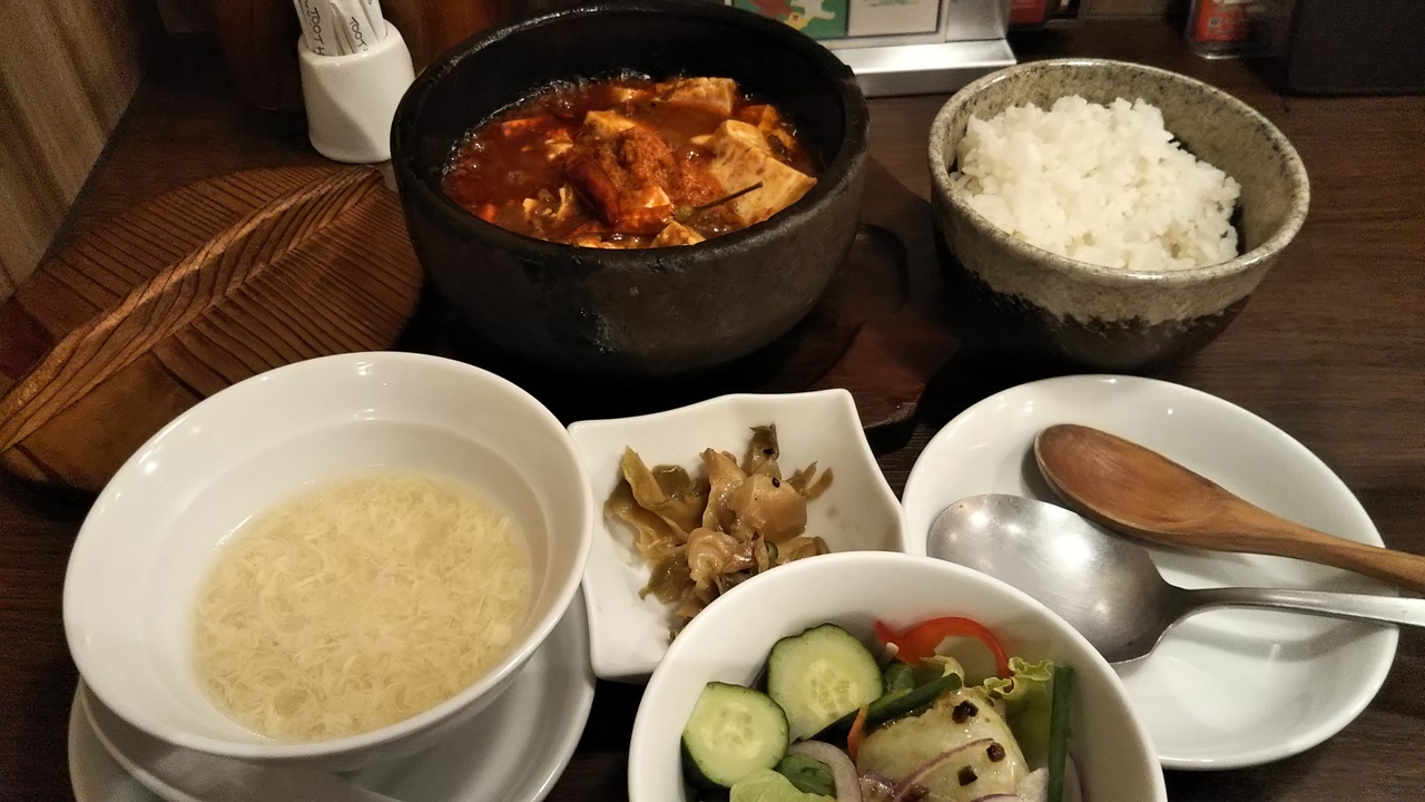 博多駅ビルの地下一階の食堂街にあります。満席でしたが、熱々の麻婆豆腐にひかれてランチで利用しました。辛さを指定できるので少し辛めにしましたが、熱々の石鍋には大きな唐辛子も入っていてかなりピリ辛でした。ご飯がよく進みました。ご飯とスープ、ザーサイなどセットになっているのでお得です。