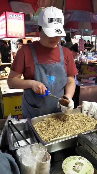 南浦洞のロッテマートにお土産を買いに来ました。食品、化粧品、家具などフロアが分かれていました。韓国コスメの化粧品はセールをやっていてパックなどがお土産に最適でした。食品も充実していて免税手続きも取扱っていました。韓国のりなど食品をまとめて買って免税手続きをするのがよさそうです。