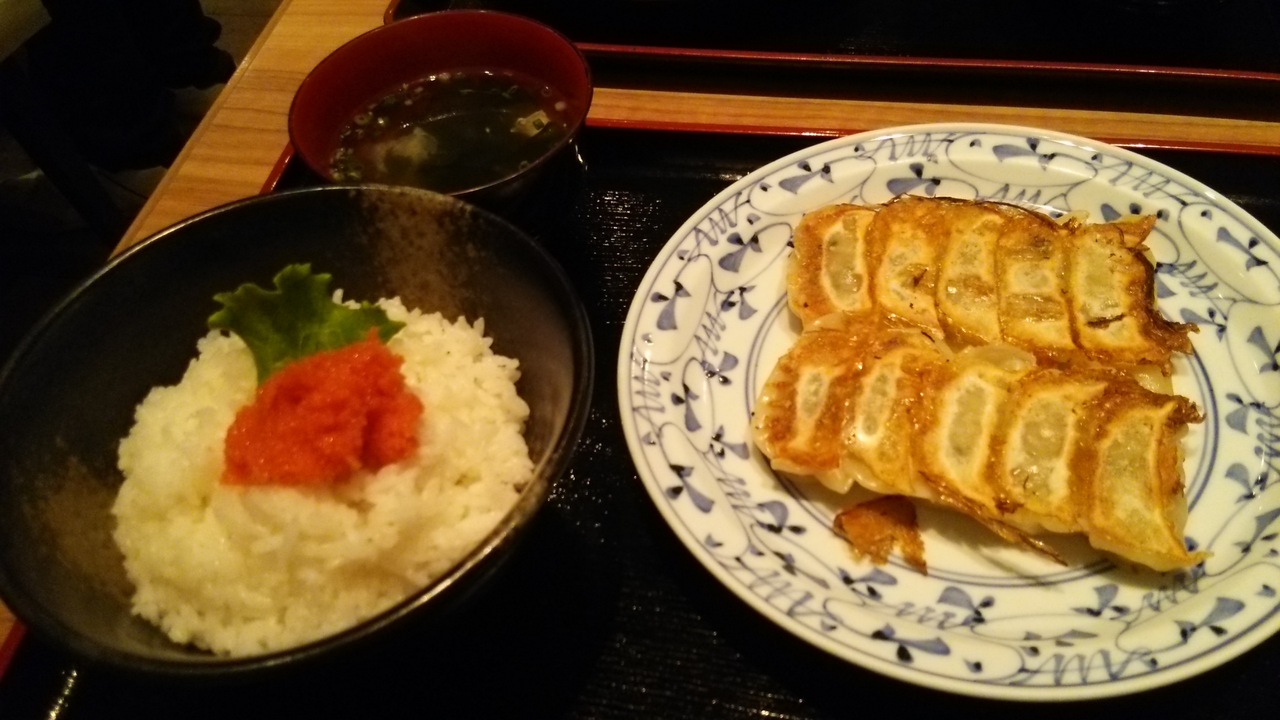 餃子が好きな友人を連れて行きました。明太子ご飯にスープがついた餃子定食に水餃子を追加しました。友人はローカルグルメに大変満足していました。餃子定食は安くてコスパが大変いいですね。くうてんに連れてきて正解でした。