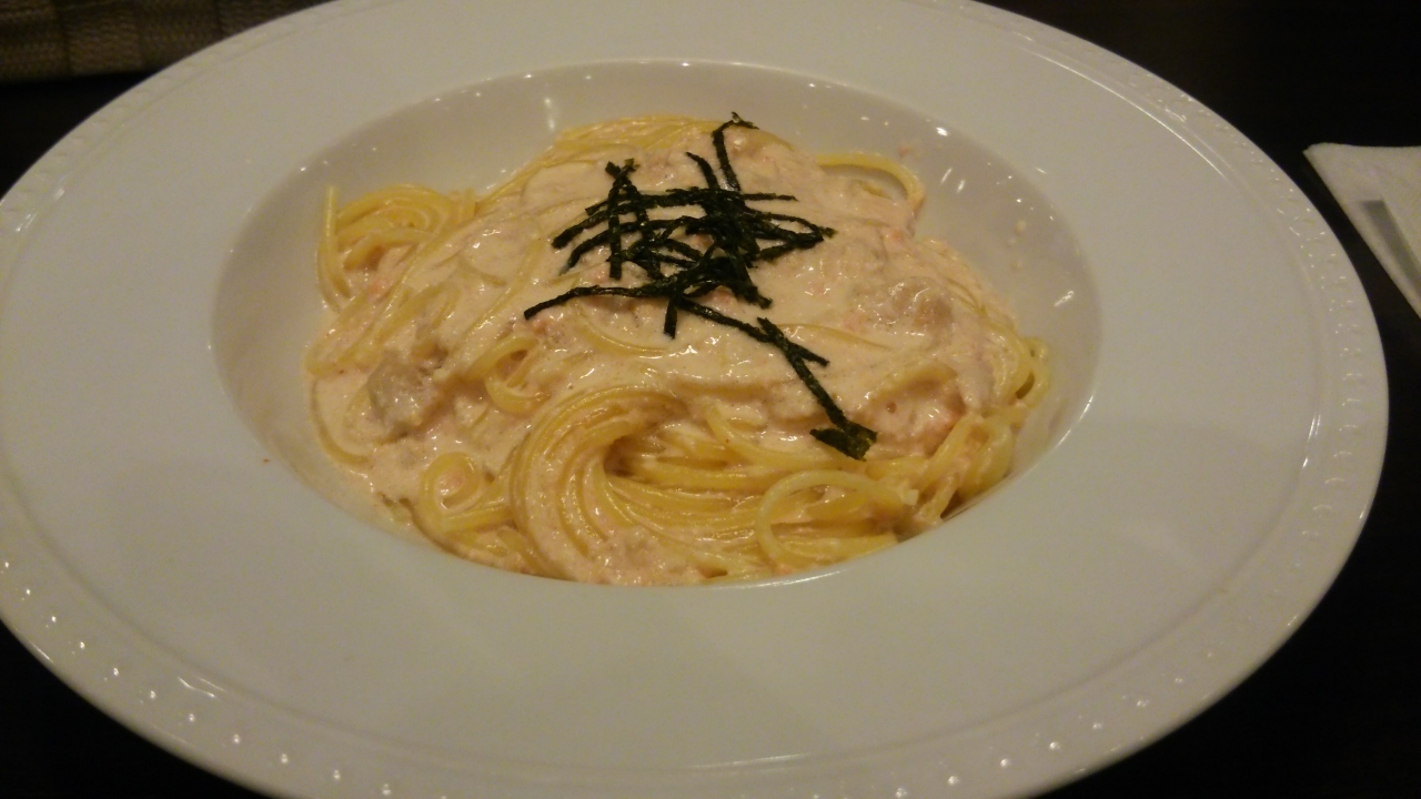 天神に何店かあるカジュアルなイタリアンです。ソラリアステージビル地下2階にあり、テーブル席中心です。手作りパスタで有名で日替わりパスタのランチはかなり安かったです。この日は明太子のクリームソースでした。
