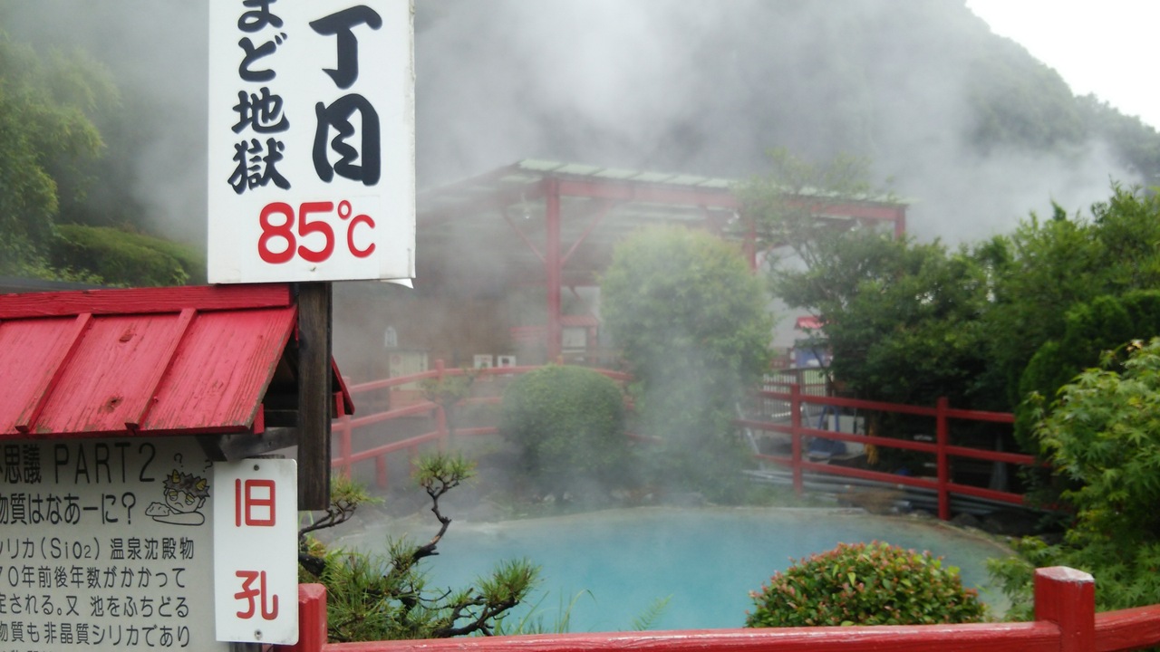 別府インターから十分ぐらいで着きました。見た目は古いですが、部屋はきれいで、夕飯も蟹や野菜を蒸した地獄蒸しや、刺身など大変美味しかったです。大浴場もかなり広くて、屋上の露天も開放感があり、大変満足しました。